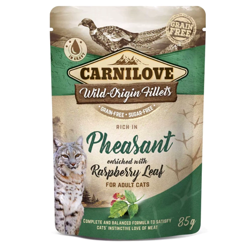 O Carnilove Pouch Alimento Úmido de Faisão com Folha de Framboesa é um alimento premium formulado para gatos, utilizando carne fresca de faisão e enriquecido com folha de framboesa. Este alimento úmido é desenvolvido para ser uma refeição completa, nutritiva e saborosa, ideal para gatos de todas as idades e perfeito para complementar a alimentação seca ou servir como refeição principal.
