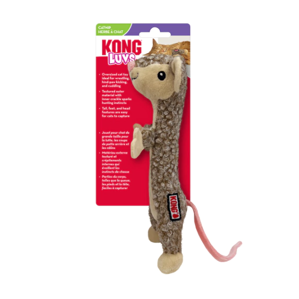 O KONG Cat Luvs é o companheiro perfeito para brincadeiras intensas e instintivas do seu gato. Projetado em um tamanho maior que o habitual, ele permite que seu gato envolva o corpo inteiro na brincadeira. Sua textura única e os estalidos internos incentivam os instintos naturais de luta, enquanto a cabeça, pés e cauda são ideais para morder e capturar.