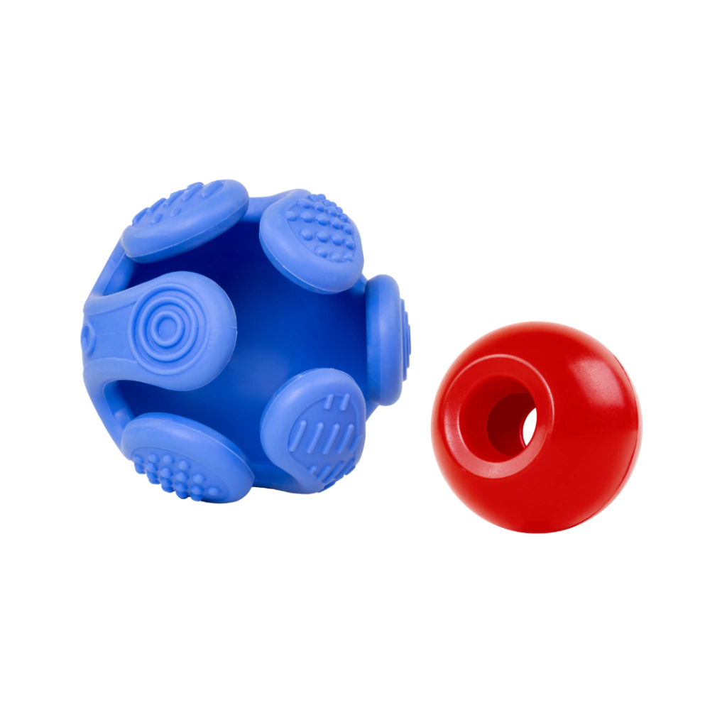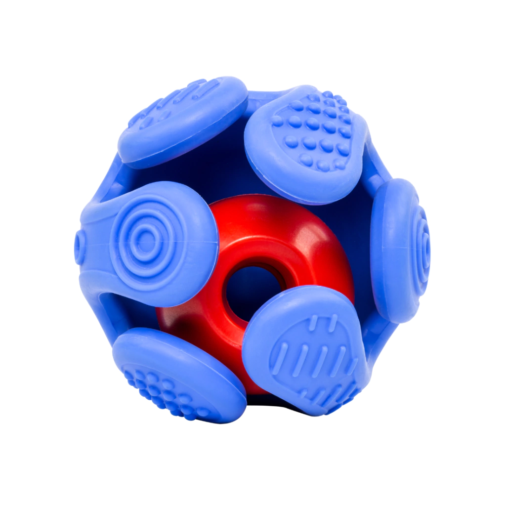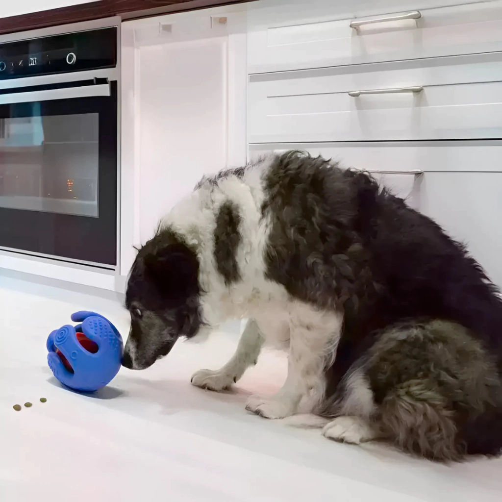 Os ruídos provocados pela bolinha dentro do brinquedo e dos petiscos dentro da bolinha estimulam os instintos naturais dos cães.