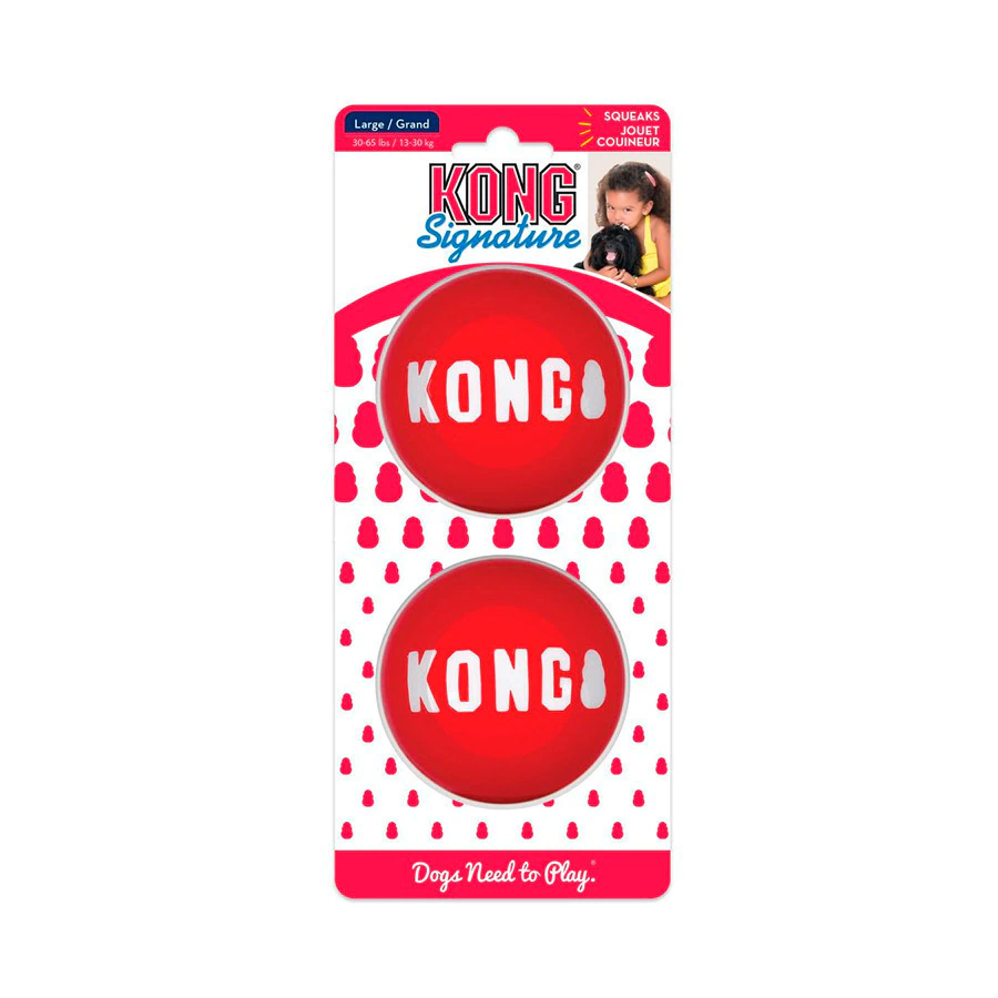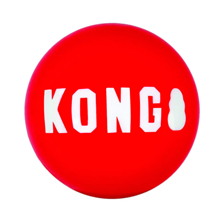 KONG Signature Ball é uma bolinha mais dura que a maioria das bolinhas da KONG e apita. Trata-se de uma bolinha linda que leva a assinatura da KONG.
