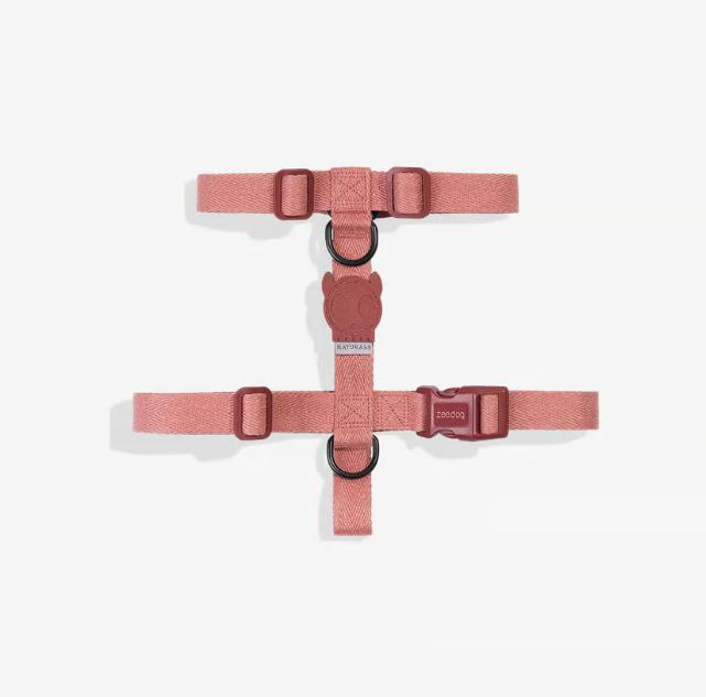 O peitoral H para cachorros Naturals Canyon da Zee.Dog possui textura macia, com tiras feitas a partir de uma mistura de fibras naturais e poliester. A caveira de borracha também é composta com fibras naturais, como fibras de madeira e trigo. Possui grande capacidade de ajuste tanto no pescoço quanto na cintura, sendo de fácil adaptação e possui duas posições para prender a guia. Assim como os cintos de segurança, é recomendado evitar contato com superfícies ásperas ou cortantes como mordidas, por exemplo.
