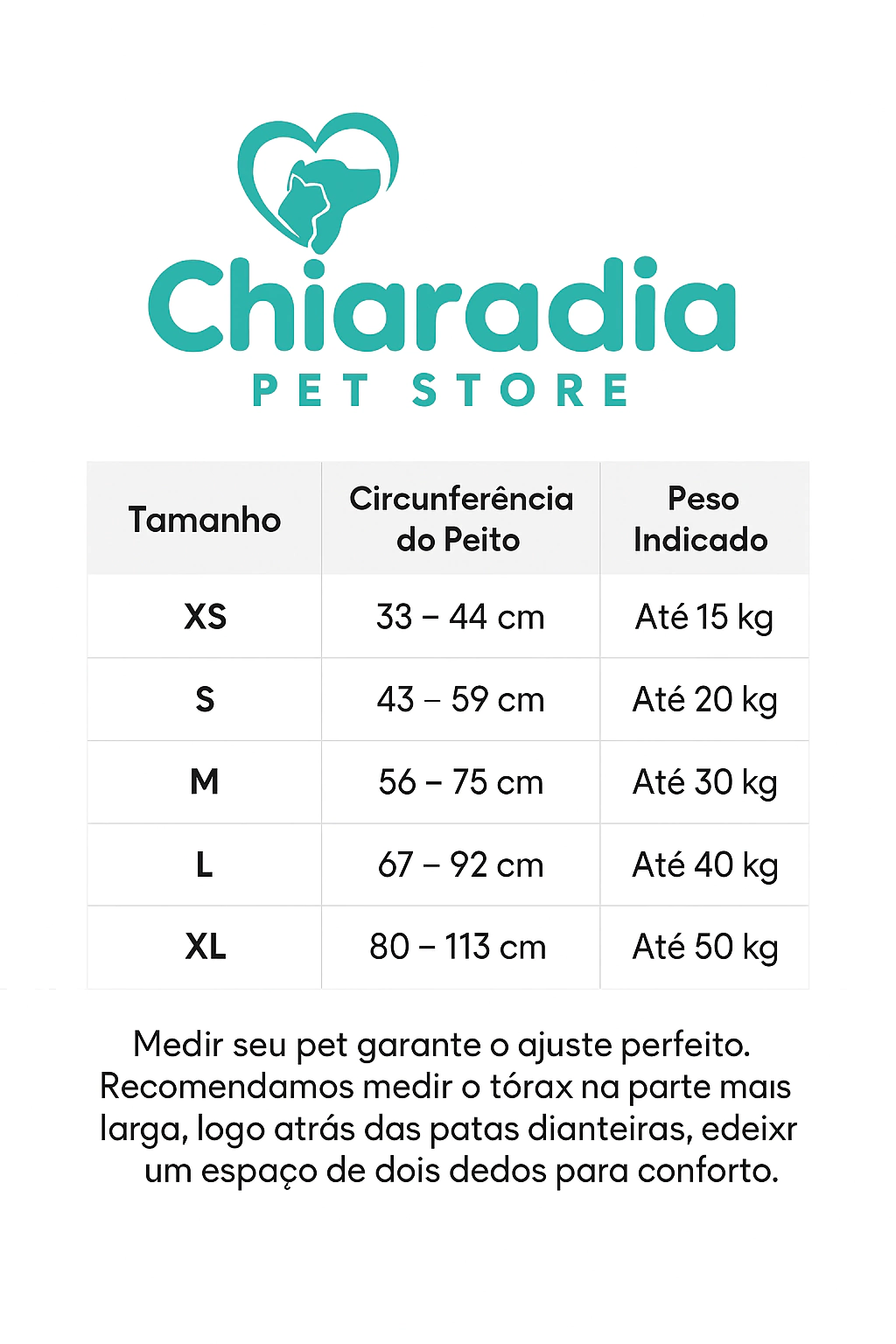 Essas medidas são referente ao tórax que deve ser medida atrás das patas dianteiras, caso tenha alguma dúvida no momento de medir, nos chame!! Ficaremos muito feliezes em lhe auxiliar.